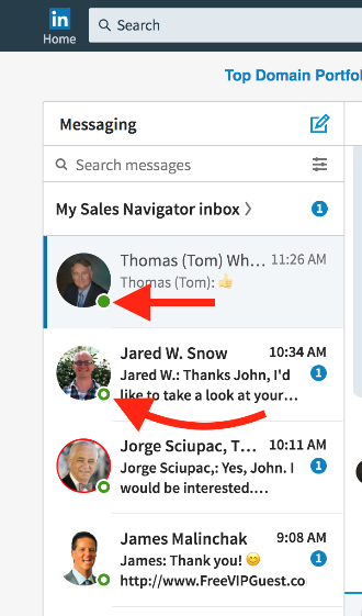 • Follow your prospects in real time. LinkedIn has added a “green dot” in your messaging tab next to a person’s name and face to let you know when he or she was last active on the platform. When someone is “Active Now,” that means you can have a real-time, live conversation. If your prospect is active on LinkedIn at this very moment, they probably have time to take a call from you. Or perhaps respond to a quick message.